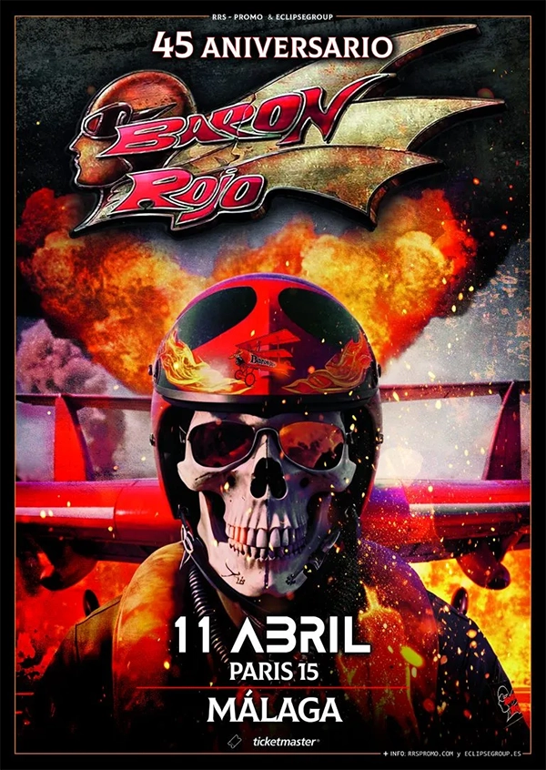 Málaga acogerá el 11 de abril en la sala París 15 (entradas aquí) el próximo concierto en España de la gira del 45º aniversario de Barón Rojo